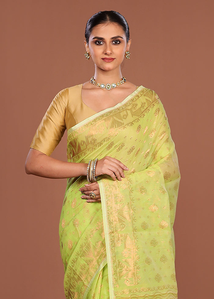 Green Jamdani Woven Dupatta - Indian Silk House Agencies
