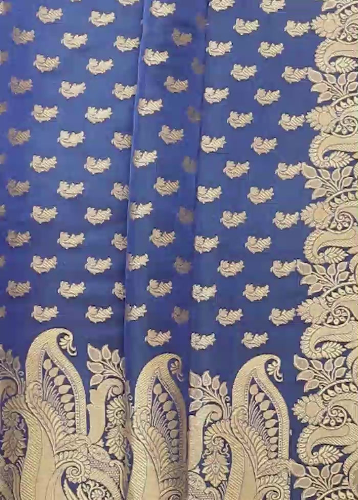 Blue Handloom Banarasi Pure Silk Saree With Blouse Piece