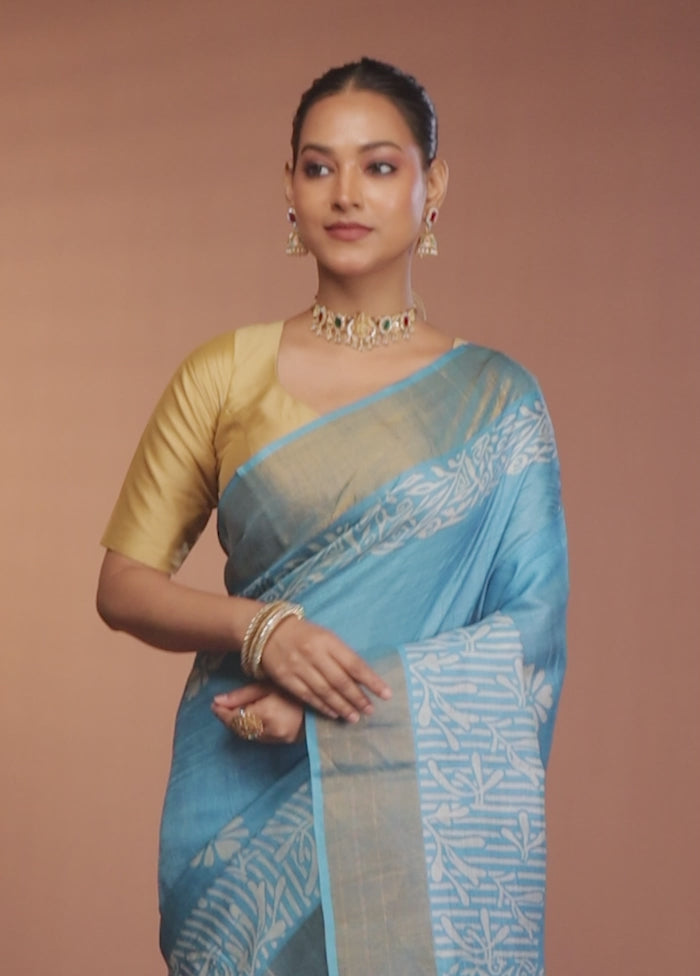Blue Tussar Silk Saree With Blouse Piece