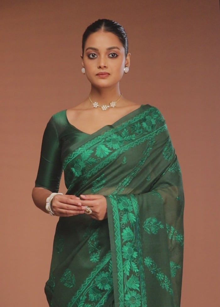 Green Pure Cotton Saree With Blouse Piece
