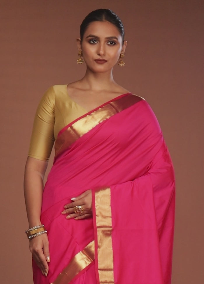 Pink Kanjivaram Silk Saree With Blouse Piece