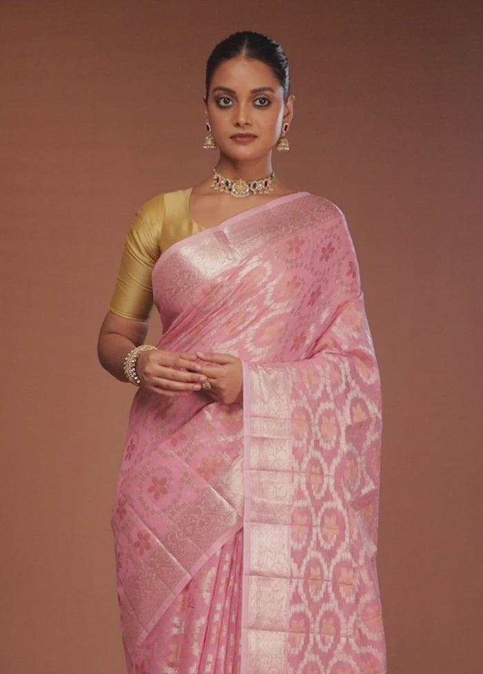 Elegance is when the inside is as beautiful as the outside Presenting, this pink color kora silk saree, made with blended silk fabric which will give you a comfortable yet attractive look. The best part of this saree is its pink. Pair it with a blouse piece. Add some matching accessories to complete your look.