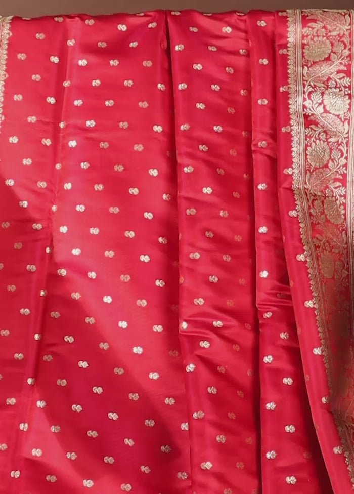 Red Handloom Banarasi Pure Silk Saree With Blouse Piece
