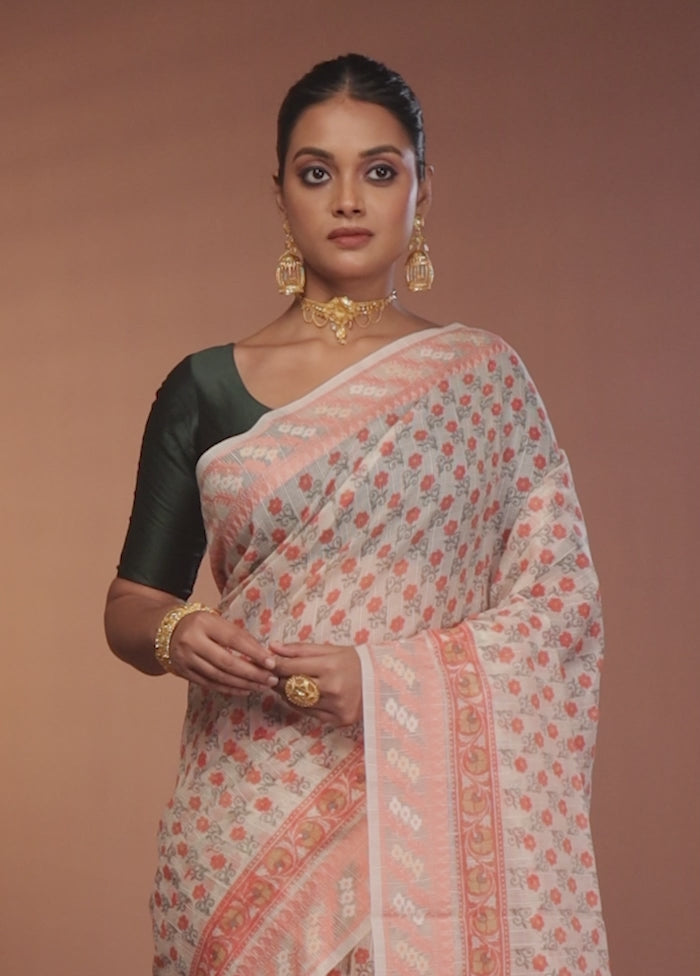 Elegance is when the inside is as beautiful as the outside Presenting, this white color cotton saree, made with blended cotton fabric which will give you a comfortable yet attractive look. The best part of this saree is its prnt. Comes with a matching blouse piece. Add some matching accessories to complete your look.