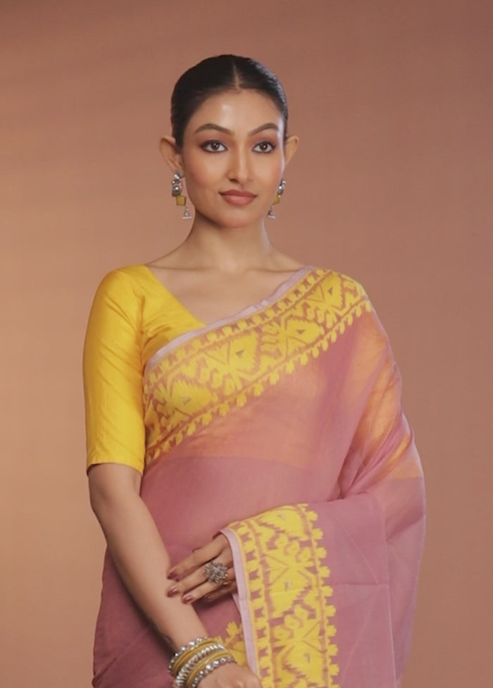 Yellow Tant Jamdani Saree Without Blouse Piece